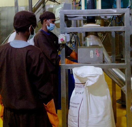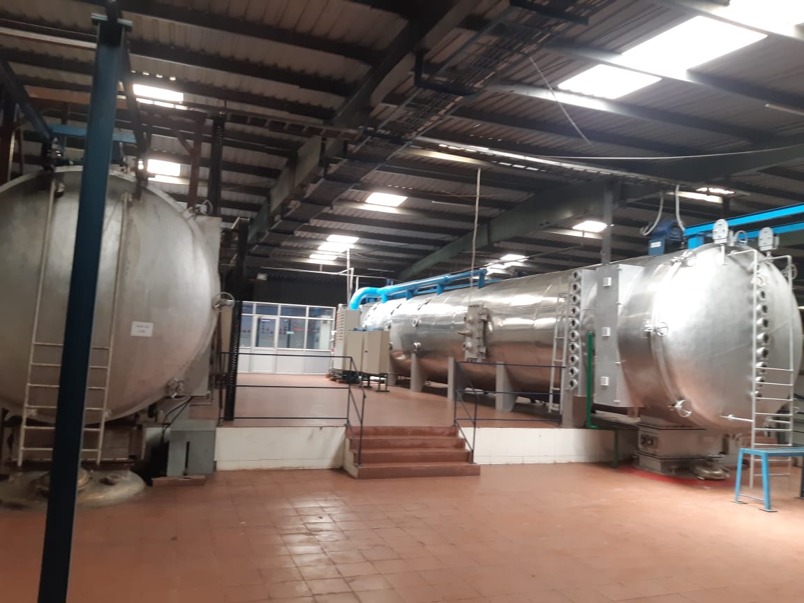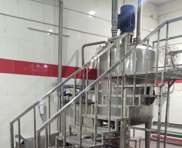 All ingredients are weighed and, depending on their nature, are mixed together in a high-shear mixer to get a uniform slurry. This slurry is further pasteurized and cooled before being sent on to the Vaccum Band Dryer (VBD).